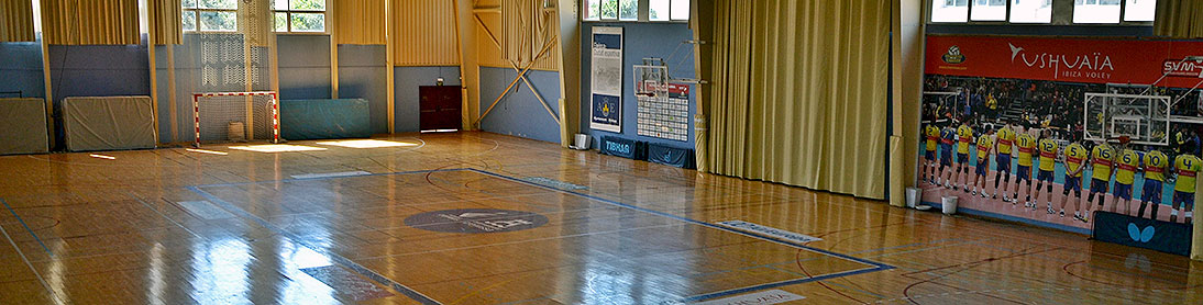Pabellón polideportivo con superficie practicable de parquet de 46 x 24 m.