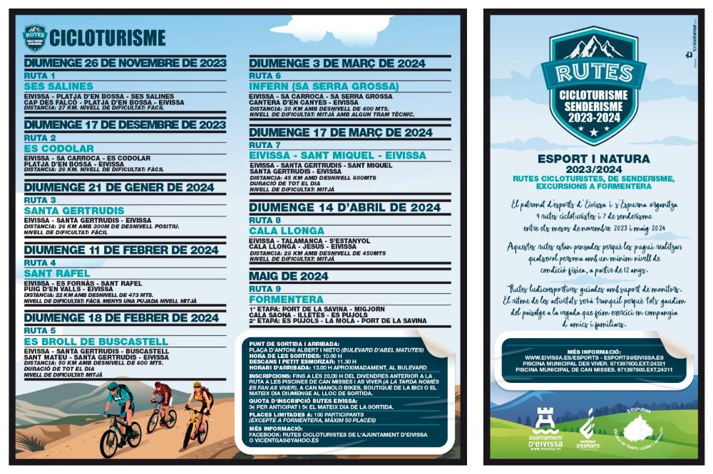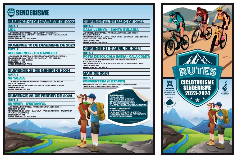 El Patronat d'Esports de l’Ajuntament d'Eivissa organitza nou rutes cicloturístiques i set de senderisme, entre els mesos de novembre 2023 i maig de 2024. La primera ruta de la temporada es farà aquest diumenge i serà la de senderisme del LIDL de Can Bufí fins al Cementiri nou.